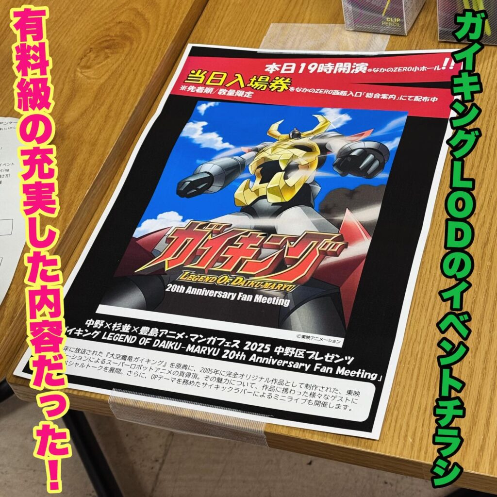 今回は11月15日に中野ZEROで開催された『中野×杉並×豊島アニメ・マンガフェス2025中野区プレゼンツ「ガイキング LEGEND OF DAIKU-MARYU 20th Anniversary Fan Meeting」』を紹介しよう!