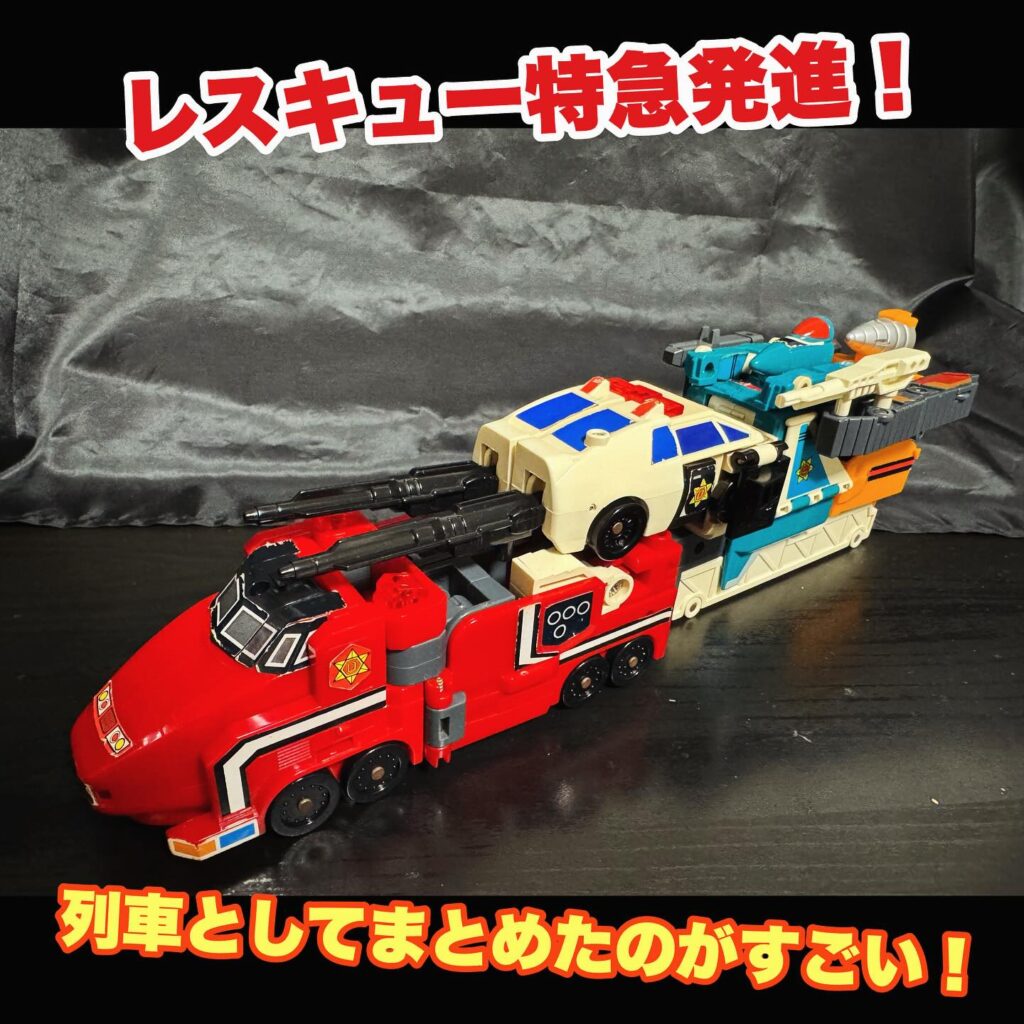 緊急特急(劇中ではレスキュー特急)のまとまり感を見てよく玩具で再現できたなと思った。