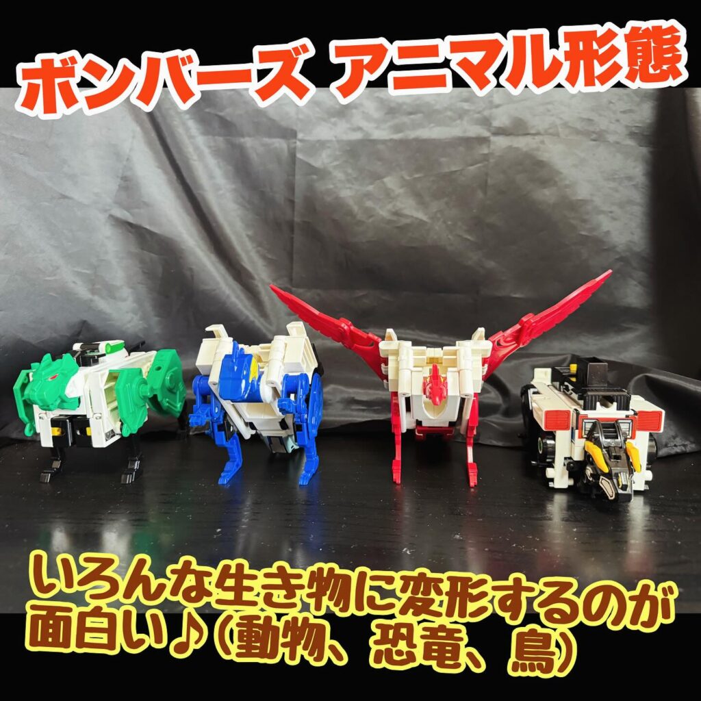ライオボンバー、ダイノボンバー、バードボンバー率いるボンバーズは3段変形のギミックが多くてメンテナンスが大変だった。
