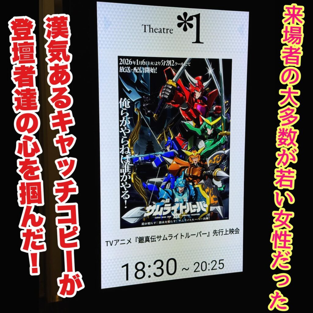 今回は12月23日に新宿ピカデリーで開催された『鎧真伝サムライトルーパー』先行上映会を紹介しよう!
