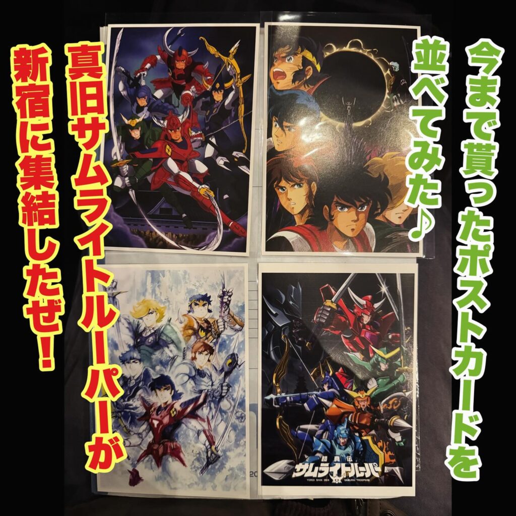 旧作のメモリアル上映会で貰ったポストカード3枚と合わせて真旧サムライトルーパーが新宿に集結したぜ!!