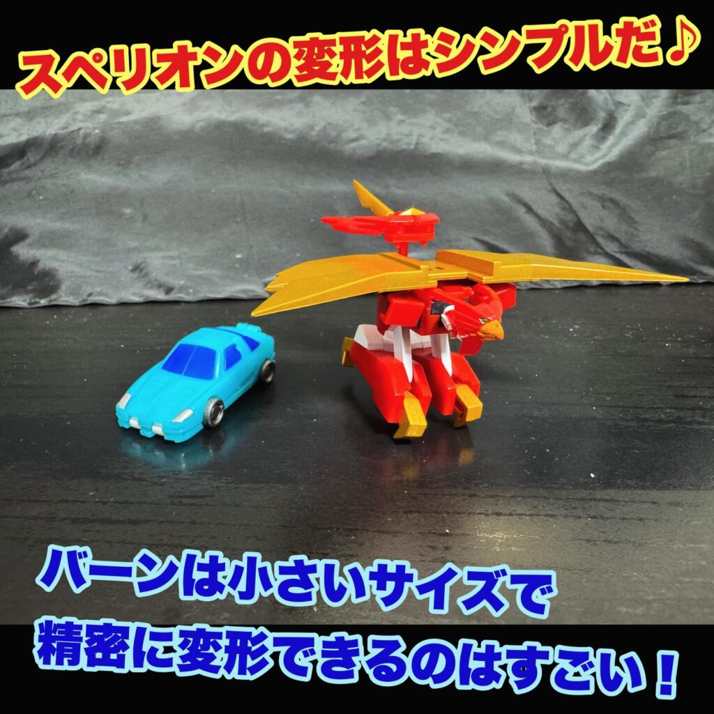 スペリオンの変形はバーンよりもシンプルですが胸になる鳥の顔が取れやすく折れやすいので注意が必要だ。