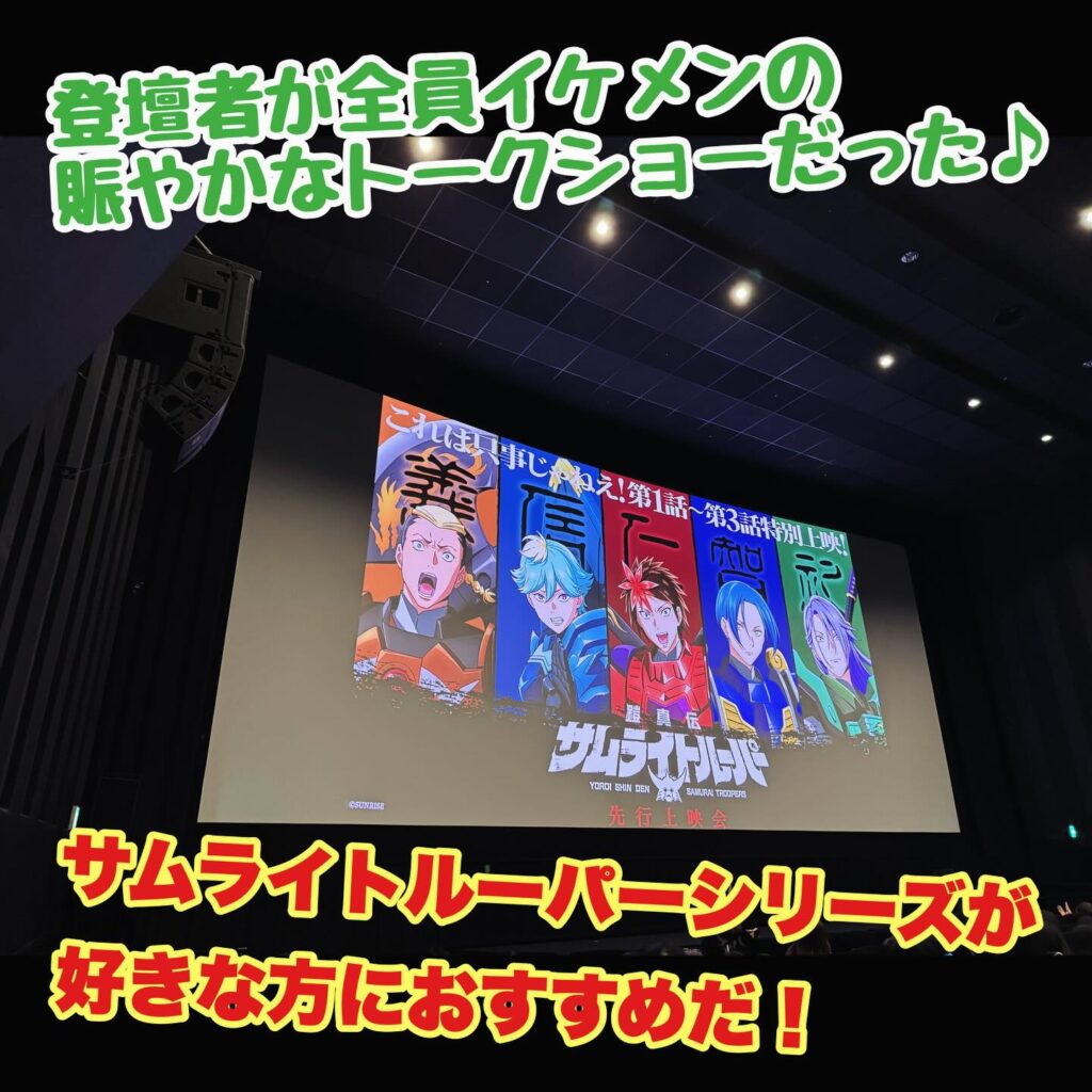 この上映会はヒーローバトルアニメが好きな方、サンライズ作品が好きな方、サムライトルーパーが好きな方、石橋陽彩さんが好きな方、村瀬歩さんが好きな方、榎木淳弥さんが好きな方、熊谷健太郎さんが好きな方、新宿ピカデリーへ行きたい方におすすめだ♪